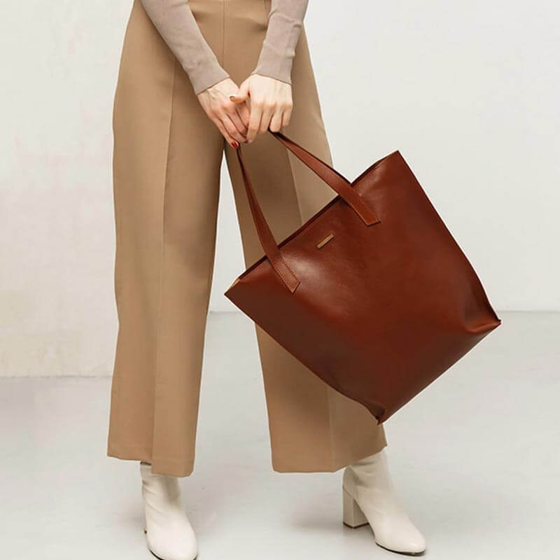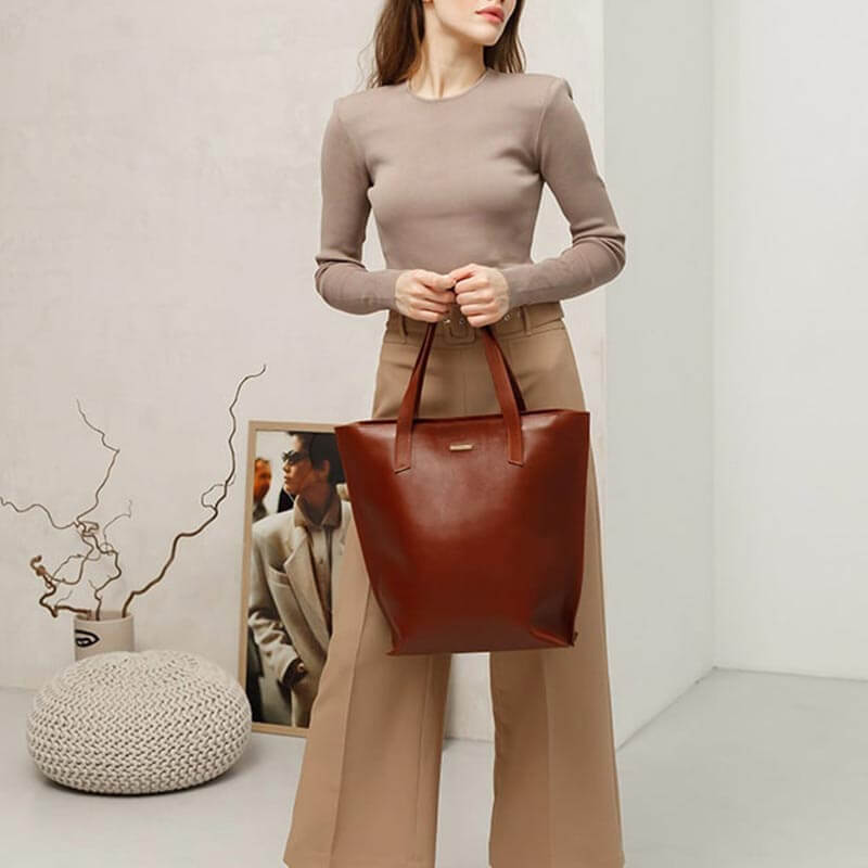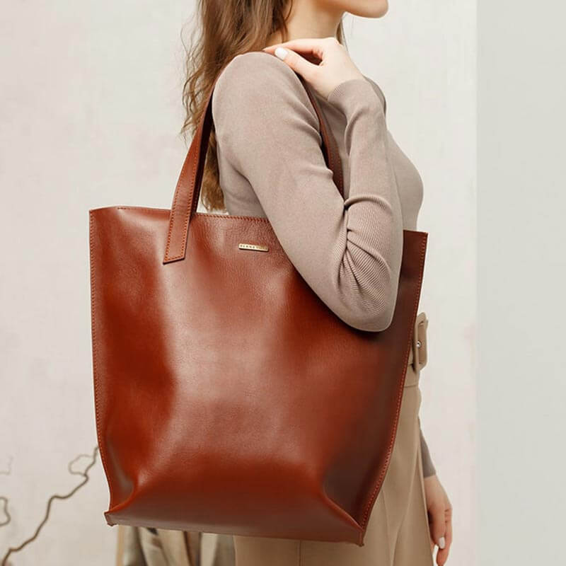 Сумка-шоппер из кожи DD (светло-коричневая)