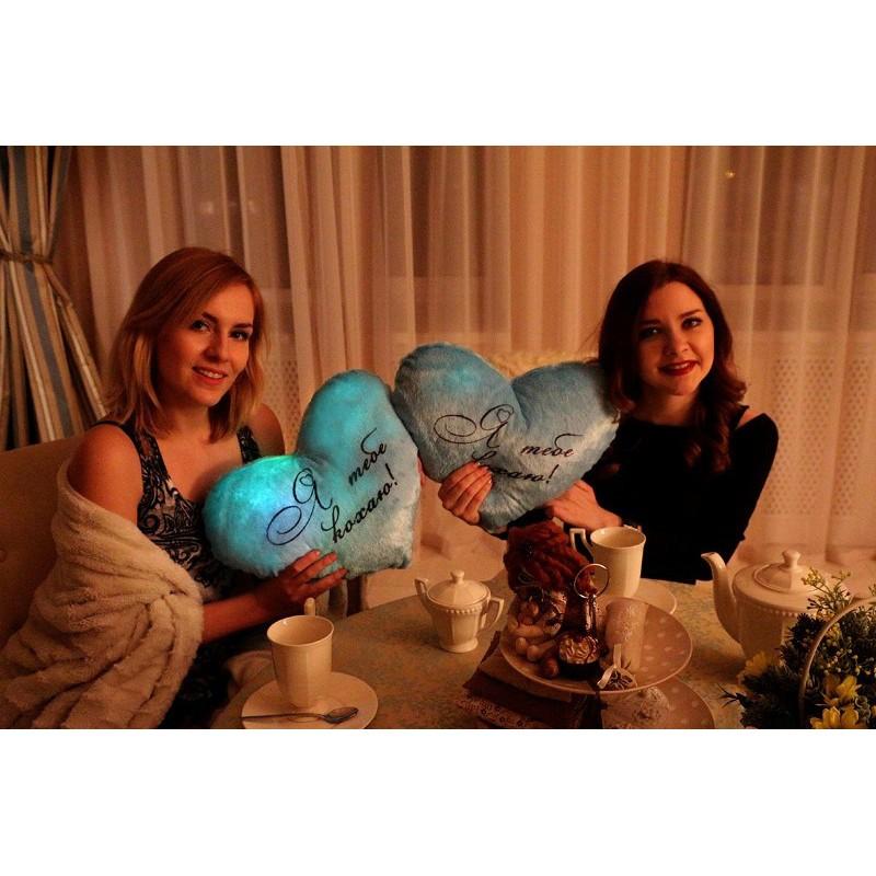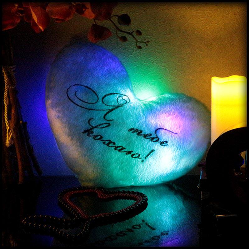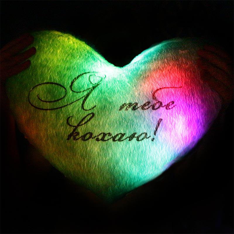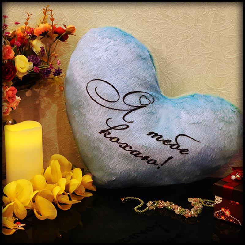 Светящаяся подушка сердце "Я тебе кохаю" (голубая)