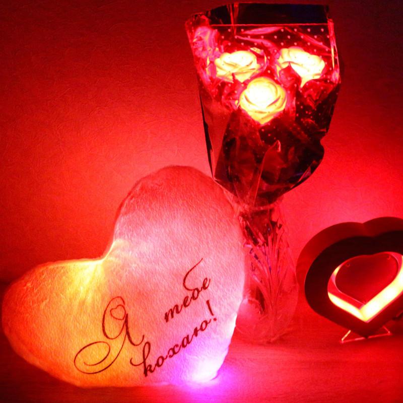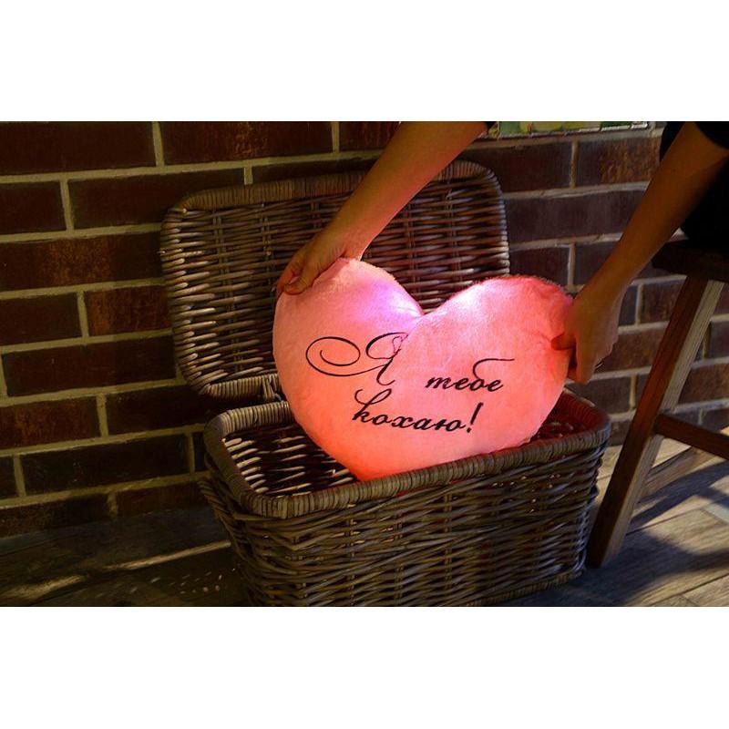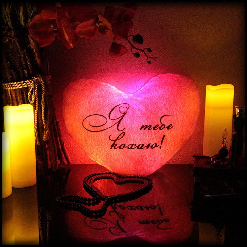 Светящаяся подушка сердце "Я тебе кохаю" (розовая)