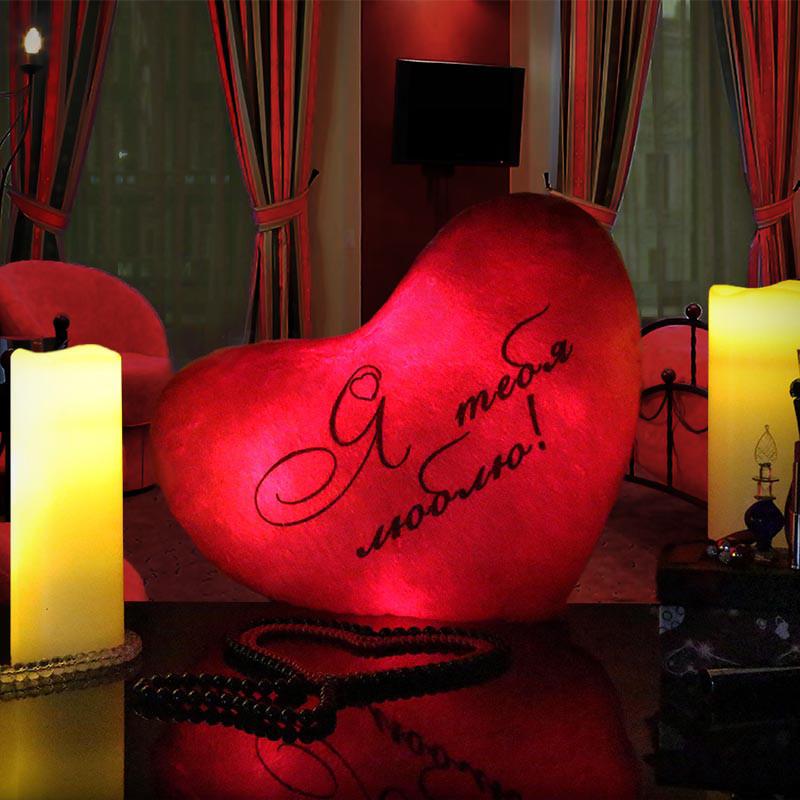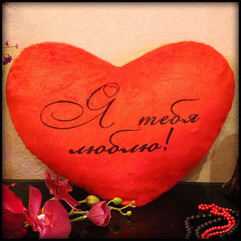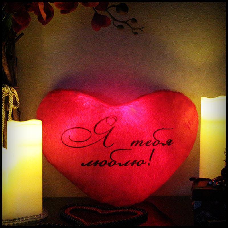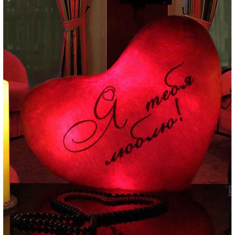 Светящаяся подушка сердце "Я тебя люблю" (красная)