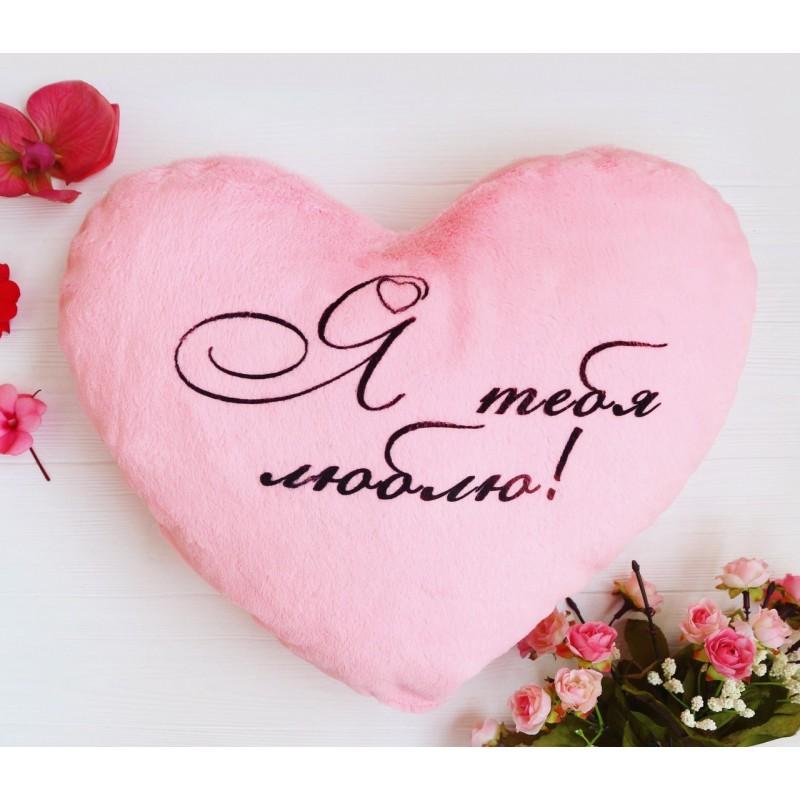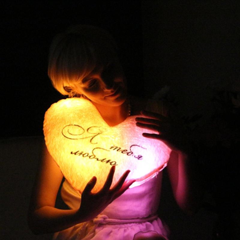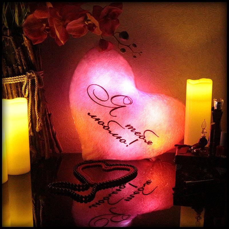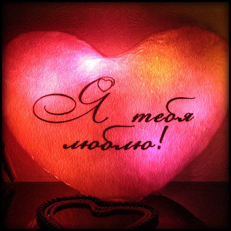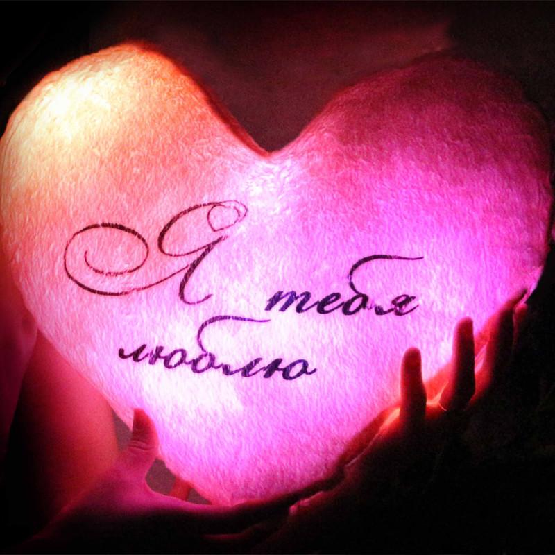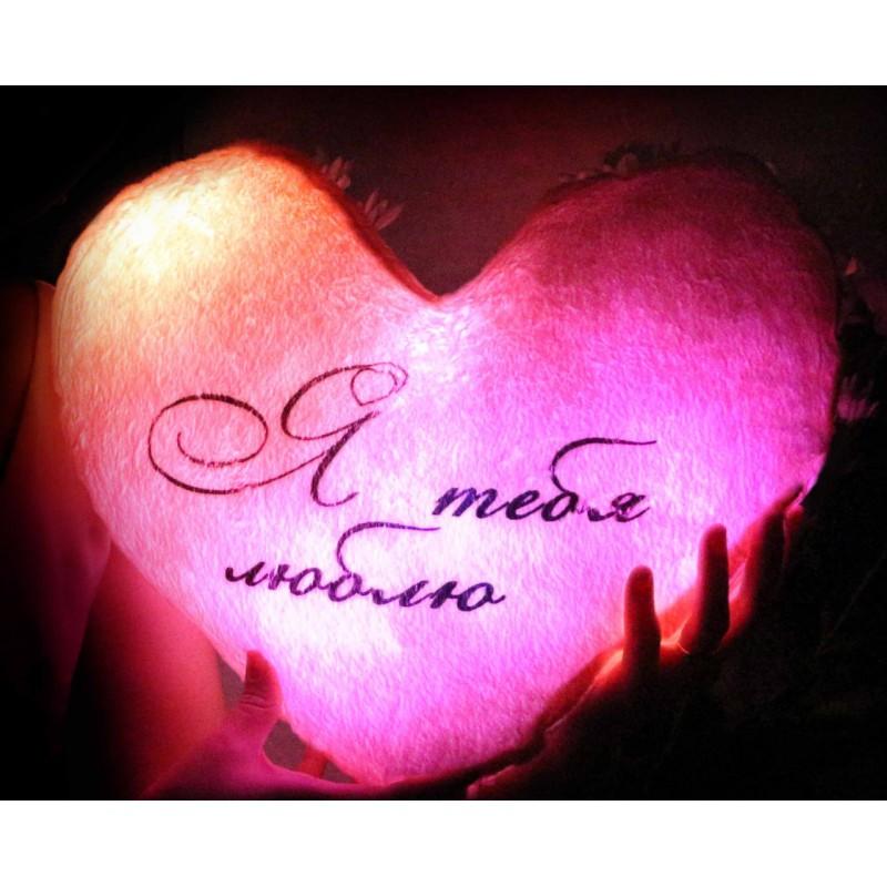 Светящаяся подушка сердце "Я тебя люблю" (розовая)