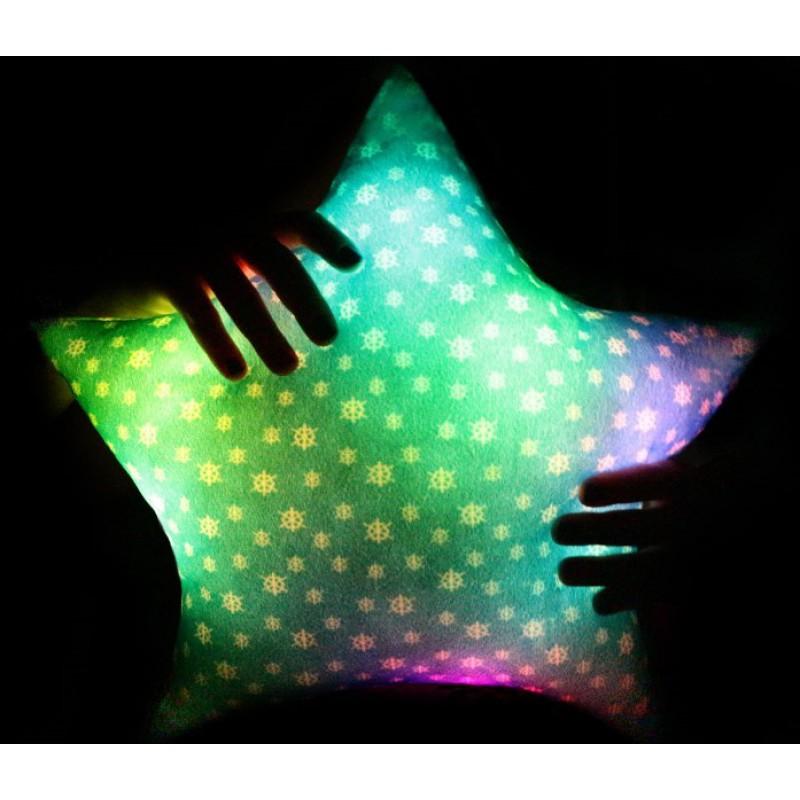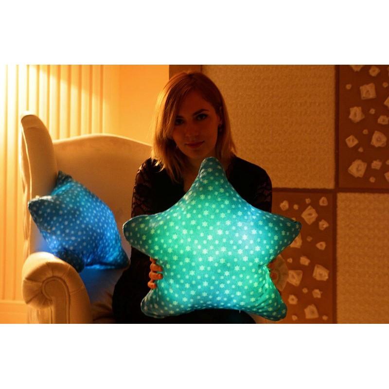 Эта светящаяся плюшевая подушка не только ночник или элемент декора. На ней также можно спать, так как она очень мягкая и удобная. Лампочки и блок питания не ощутимы, водостойкая печать, подушка на 100% безопасная и не вызывает аллергию, можно стирать в ручную.