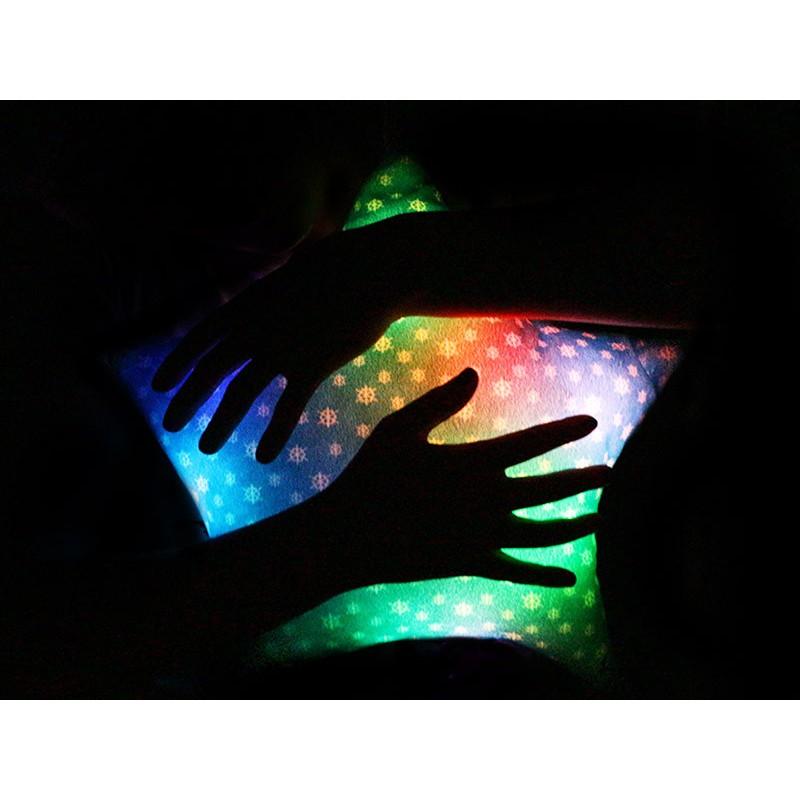 Подушка которая светится в темноте. Это ярко, красочно, мягко, креативно и необычно, все это главные критерии, которые отличают данную подушку от своих аналогов. А всё это благодаря световым диодам, которые находятся внутри подушки они вшитые в прозрачный синтипон. При одном прикосновении к светодиодной подушке "Снежинки" она засияет радужным приятным светом и придаст вашей комнате приятного радужного света и создаст атмосферу тепла и уюта. Так что, её смело можно назвать уникальной в своём роде.