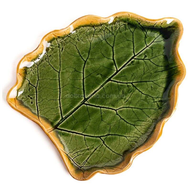 Тарелка-листок с ободком «Лопух» 31 см (зеленая)