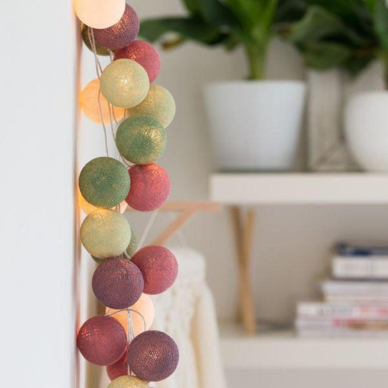Тайской гирляндой Forest Fruit из хлопковых шариков можно с легкостью украсить и наполнить уютом интерьер гостиной, спальни или кухни, создать сказочный декор для праздника, особенно для Нового Года, или использовать гирлянду в качестве ночника для детской комнаты. Даже когда гирлянда выключена, она продолжит радовать Вас своими яркими шариками.