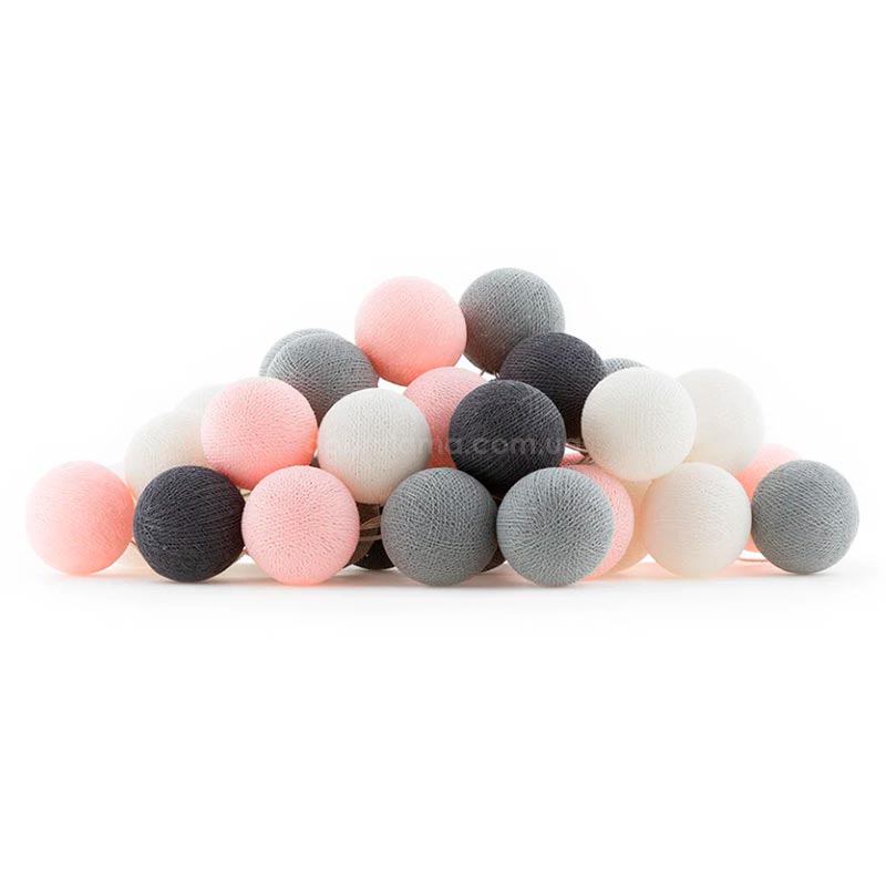 Тайской гирляндой "Pink-grey" из хлопковых шариков можно с легкостью украсить и наполнить уютом интерьер гостиной, спальни или кухни, создать сказочный декор для праздника, особенно для Нового Года, или использовать гирлянду в качестве ночника для детской комнаты. Даже когда гирлянда выключена, она продолжит радовать Вас своими яркими шариками.