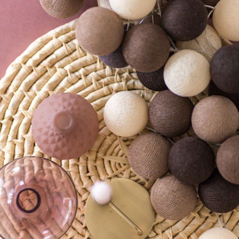 Тайской гирляндой Brown из хлопковых шариков можно с легкостью украсить и наполнить уютом интерьер гостиной, спальни или кухни, создать сказочный декор для праздника, особенно для Нового Года, или использовать гирлянду в качестве ночника для детской комнаты. Даже когда гирлянда выключена, она продолжит радовать Вас своими яркими шариками.
