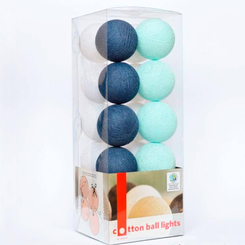 Тайской гирляндой Navy blue из хлопковых шариков можно с легкостью украсить и наполнить уютом интерьер гостиной, спальни или кухни, создать сказочный декор для праздника, особенно для Нового Года, или использовать гирлянду в качестве ночника для детской комнаты. Даже когда гирлянда выключена, она продолжит радовать Вас своими яркими шариками.