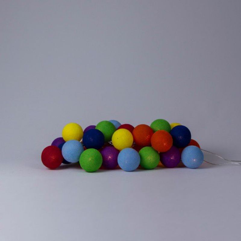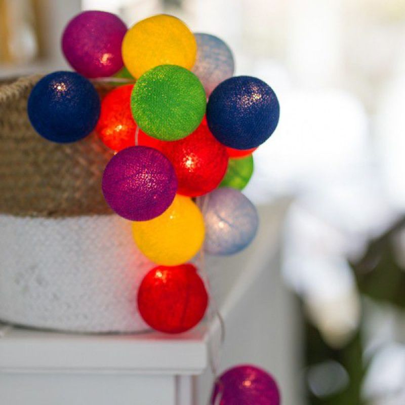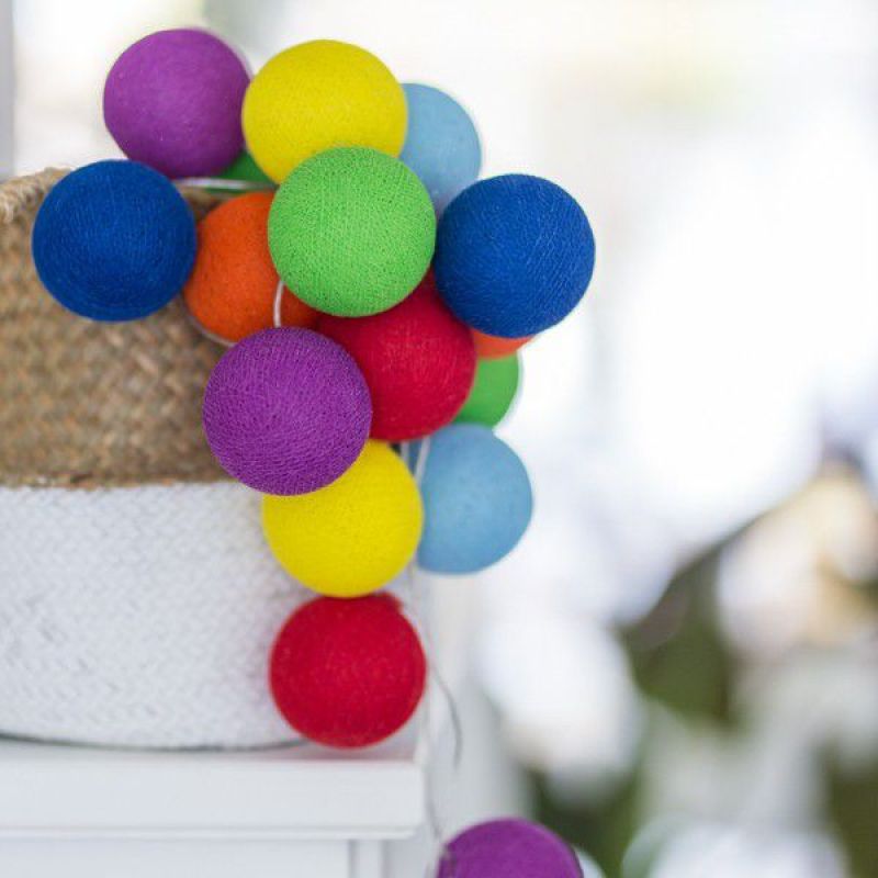 Тайской гирляндой Rainbow из хлопковых шариков можно с легкостью украсить и наполнить уютом интерьер гостиной, спальни или кухни, создать сказочный декор для праздника, особенно для Нового Года, или использовать гирлянду в качестве ночника для детской комнаты. Даже когда гирлянда выключена, она продолжит радовать Вас своими яркими шариками.