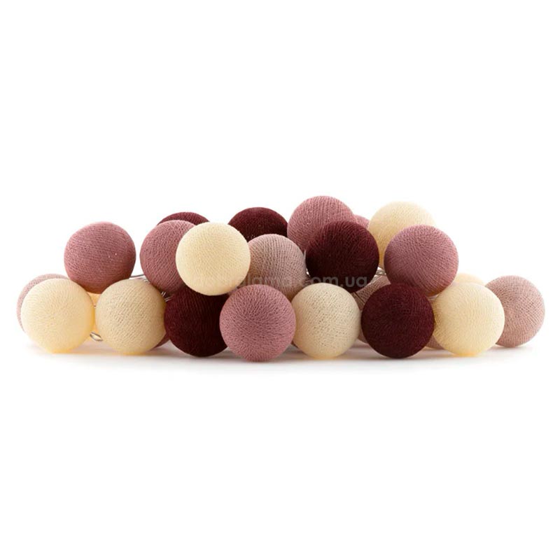 Шарики для гирлянды ручной работы и выполнены из натурального материала — хлопковой нити. Они не разобьются при падении и защитят Вас и Вашего ребенка от контакта с лампочками.