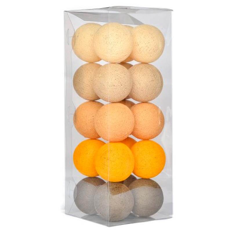 Шарики для гирлянды ручной работы и выполнены из натурального материала — хлопковой нити. Они не разобьются при падении и защитят Вас и Вашего ребенка от контакта с электролампочками.