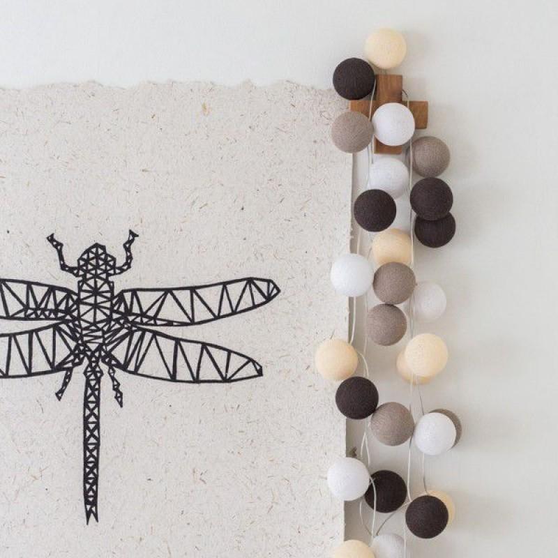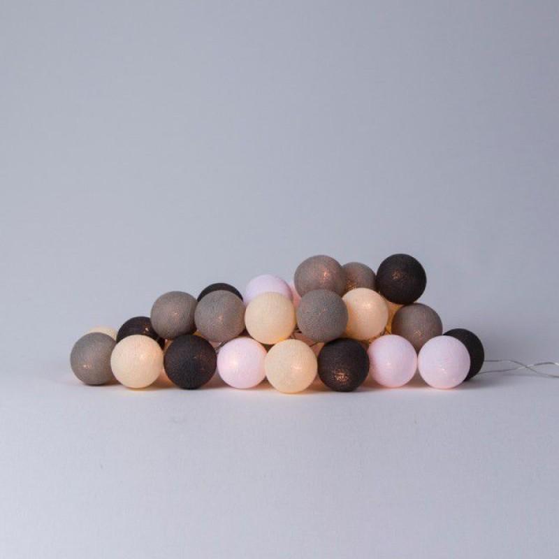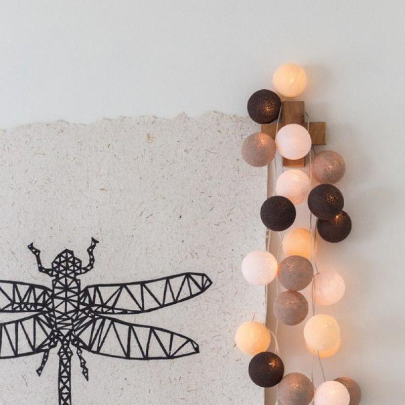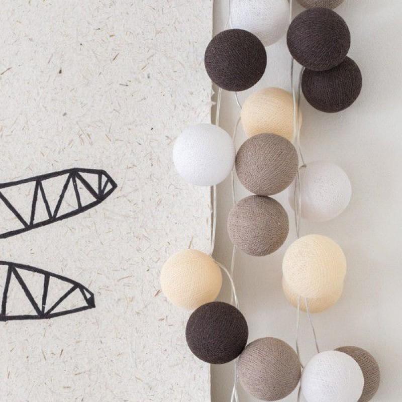 Тайской гирляндой Taupe из хлопковых шариков можно с легкостью украсить и наполнить уютом интерьер гостиной, спальни или кухни, создать сказочный декор для праздника, особенно для Нового Года, или использовать гирлянду в качестве ночника для детской комнаты. Даже когда гирлянда выключена, она продолжит радовать Вас своими яркими шариками.