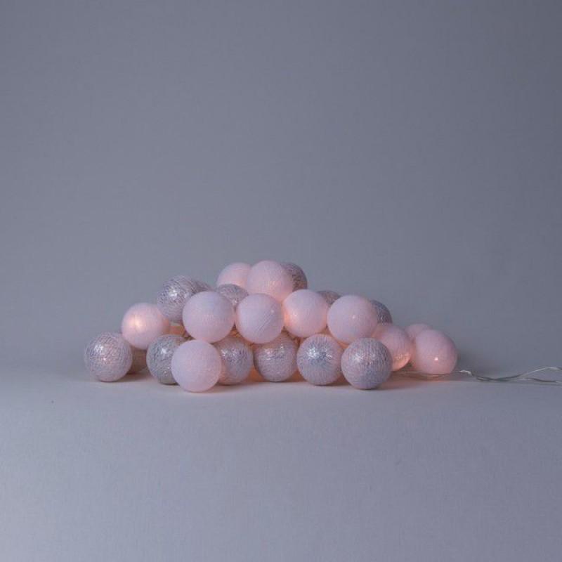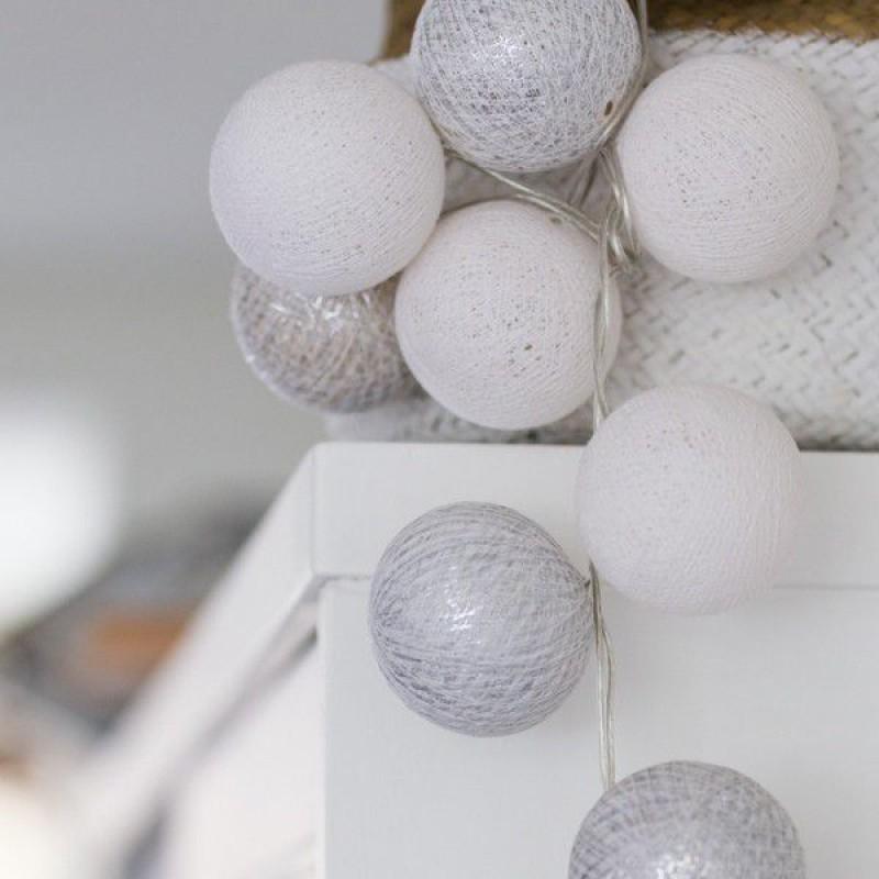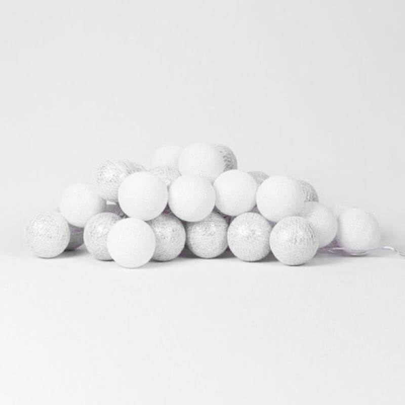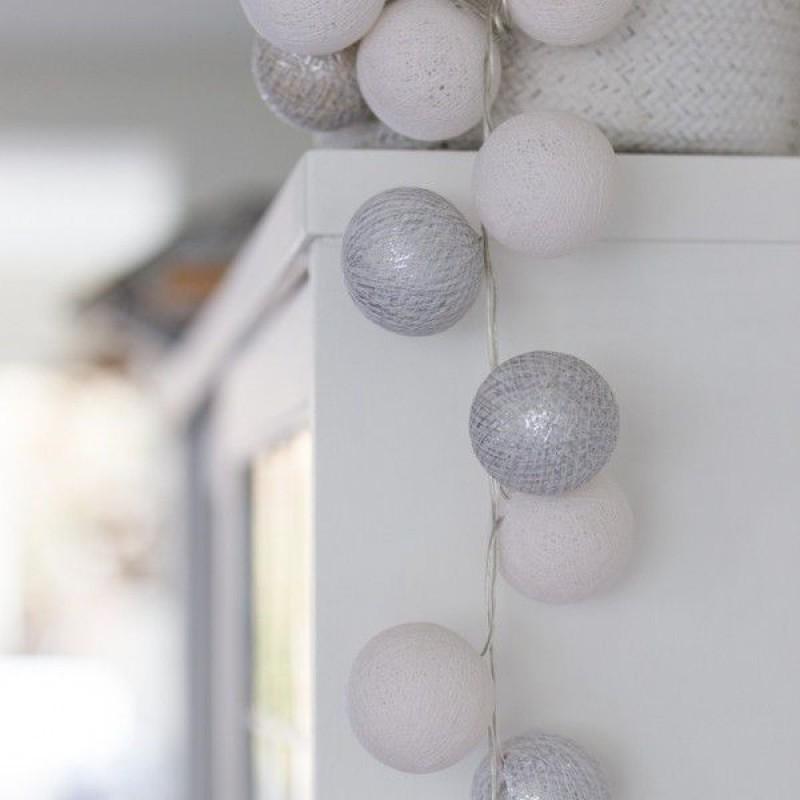 Тайской гирляндой White-Silver из хлопковых шариков можно с легкостью украсить и наполнить уютом интерьер гостиной, спальни или кухни, создать сказочный декор для праздника, особенно для Нового Года, или использовать гирлянду в качестве ночника для детской комнаты. Даже когда гирлянда выключена, она продолжит радовать Вас своими яркими шариками.