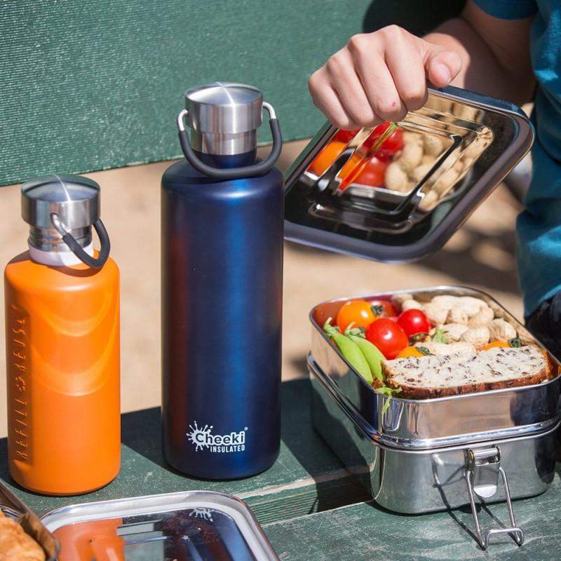 Термос Cheeki имеет эргономичную форму и мощную защиту от проливания. Резиновая накладка на дне термоса делает его устойчивым к падениям, а ручка с нескользящим резиновым покрытием – максимально удобной для переноски, а также для крепления на рюкзаке или велосипеде.