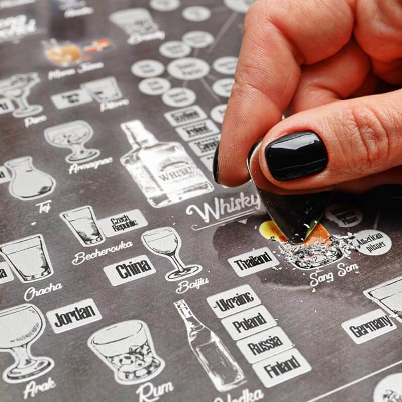 Ми знаємо, як сильно ви любите подорожувати! У кожній країні є своя місцева найкраща випивка, ми додали прапори на постер, а це значить, що ви можете стирати скретч шар з постера після відвідування чергової місцевої "родзинки"!