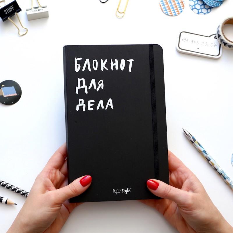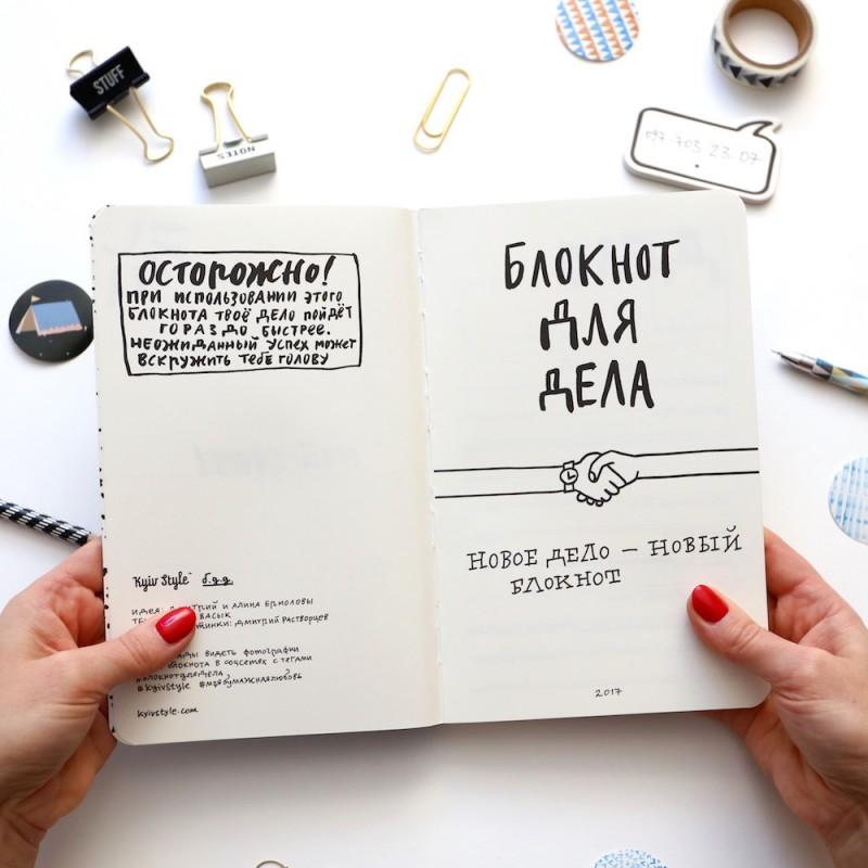 «Блокнот для дела» - яскравий і нестандартний, справжній тренажер для натхнення. В процесі роботи над блокнотом ми переосмислили таке нудне поняття як діловий блокнот. Ми вирішили довести, що написання планів на тиждень, списку покупок і бюджетів може бути веселим і цікавим. У ньому можна не тільки писати, а й малювати, робити нотатки, змінювати його дизайн за допомогою крутих наклейок та багато іншого.