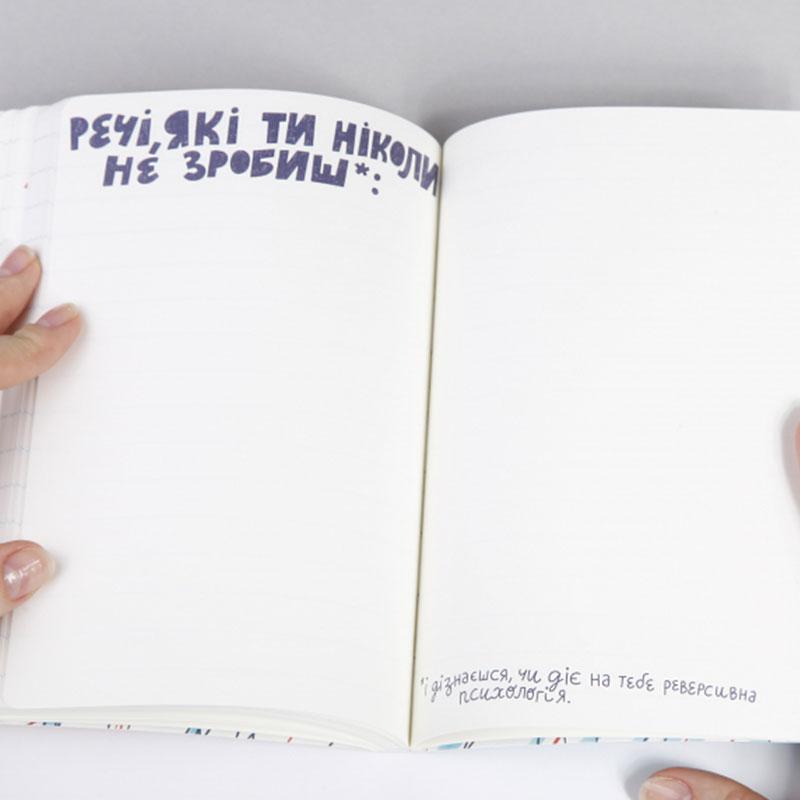 Ці сторінки просочені абсолютною свободою і закликають кожного, хто візьме в руки блокнот: писати, креслити, малювати, калякати все, чого тільки душа забажає. Вільно, впевнено, розмашисто... так, ніби ніхто не бачить... Цей щоденник ніби прямо говорить - РОБИ, ЩО ХОЧЕШ! Не бійся помилитися, ти на своїй території. Будь собою, будь будь-яким, не бійся виділятися! Створюй, експериментуй і зовсім не важливо, скільки тобі років і чого від тебе очікують інші. Будь різним, будь спонтанним, будь собою!