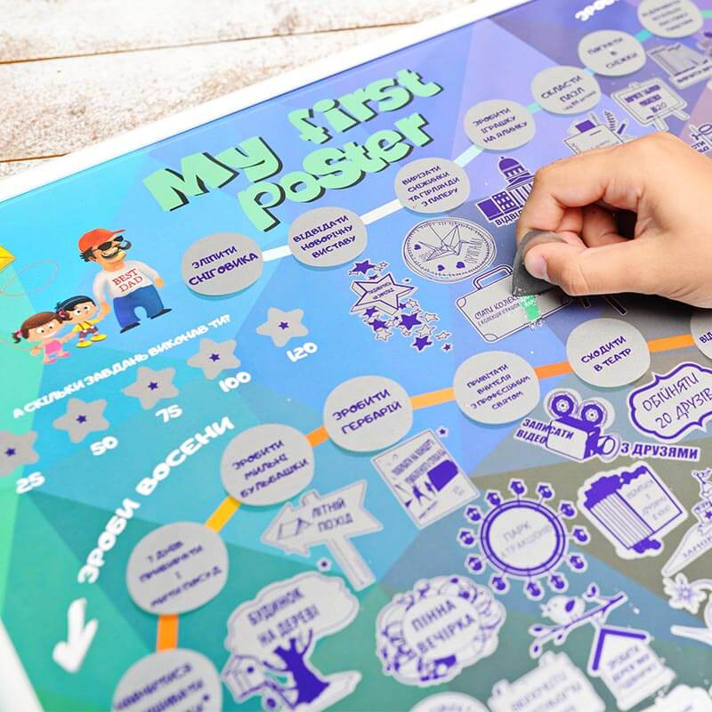 My First Poster, привертає увагу дітей! Хлопчикам і дівчаткам подобається його розглядати. А ще більше, їм подобатися стирати срібний скретч шар!