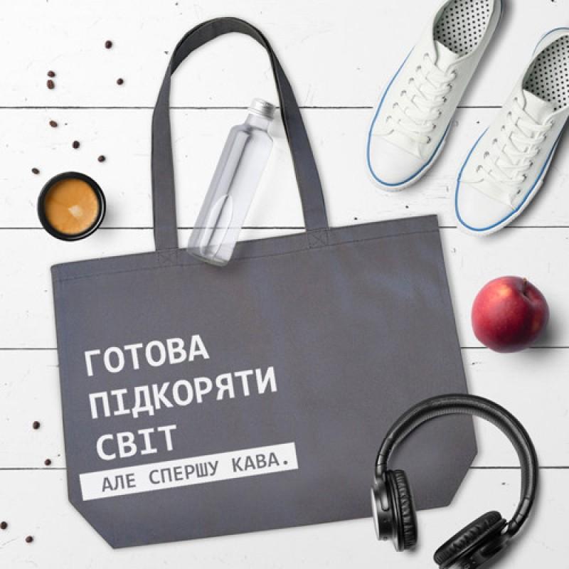 Еко сумка Market MAXI "Готова підкоряти світ, але спершу кава"