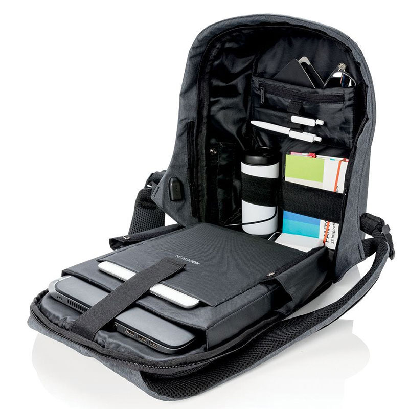 XD Design Bobby Compact - оновлена модель всесвітньо відомого рюкзака, яка зберегла всі свої переваги, а саме непрорізані матеріали, приховані блискавки та таємні кишені, інтегрований порт USB для зарядки, збалансована вага, водовідштовхувальна тканина, світловідбиваючі смуги безпеки та ремінь для кріплення на валізу.