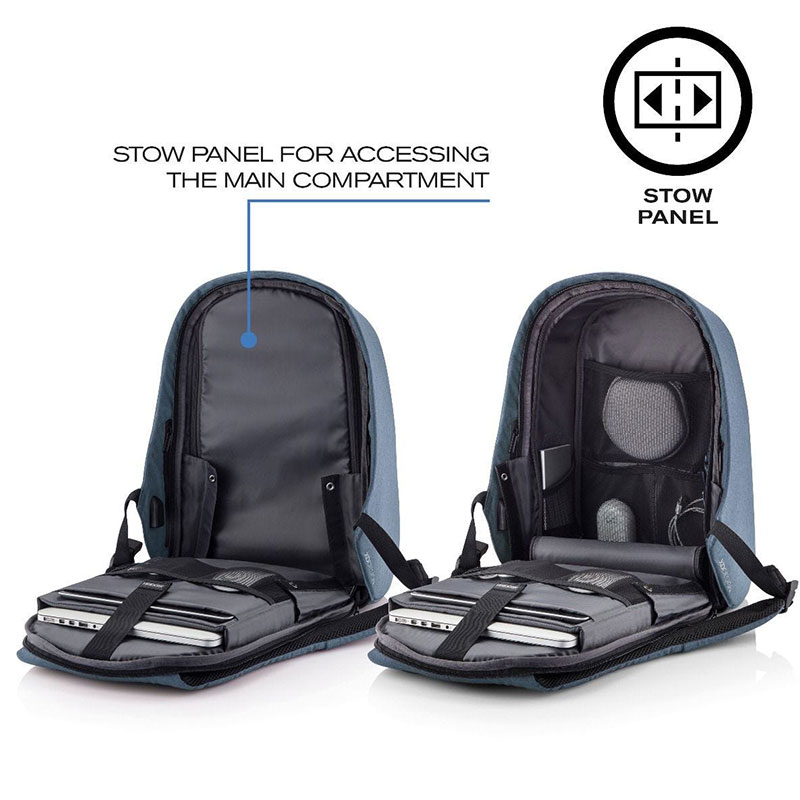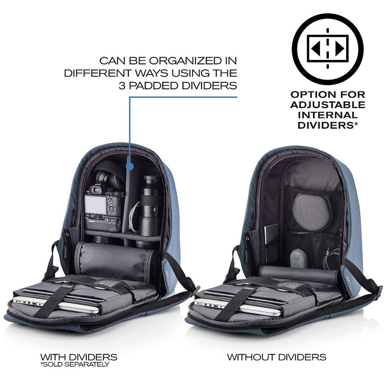 XD Design Bobby Hero - оновлена модель всесвітньо відомого рюкзака, яка зберегла всі свої переваги, а саме непрорізані матеріали, приховані блискавки та таємні кишені, інтегрований порт USB для зарядки, збалансована вага, водовідштовхувальна тканина, світловідбиваючі смуги безпеки та ремінь для кріплення на валізу.