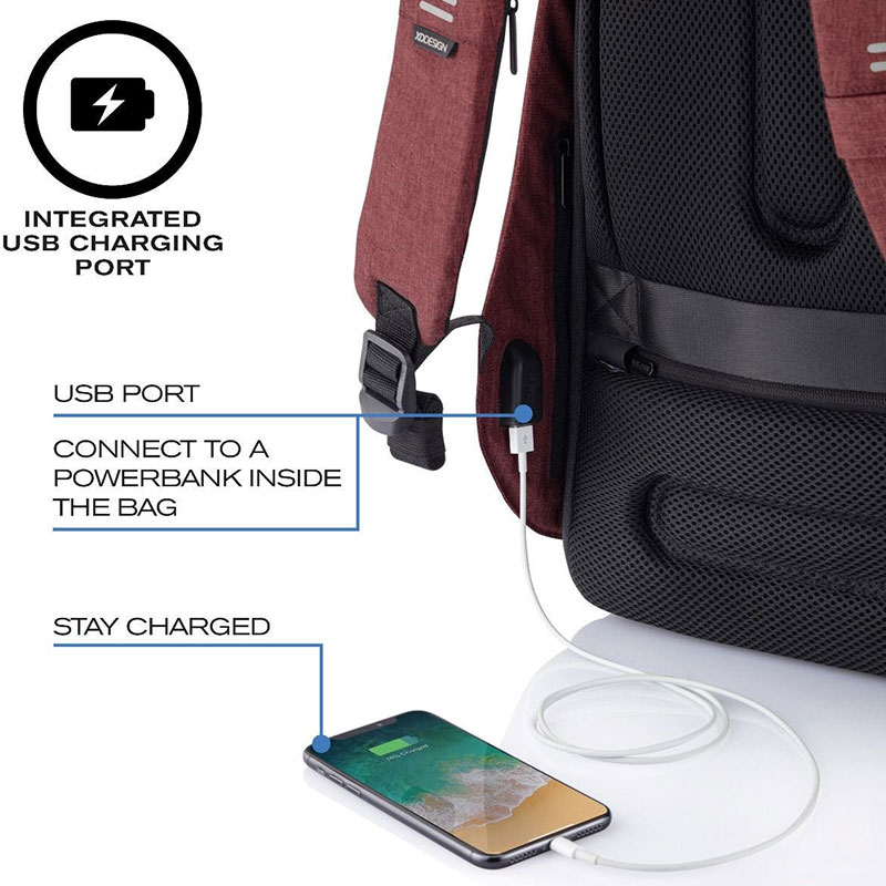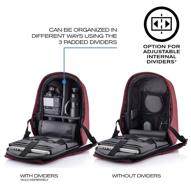 XD Design Bobby Hero - оновлена модель всесвітньо відомого рюкзака, яка зберегла всі свої переваги, а саме непрорізані матеріали, приховані блискавки та таємні кишені, інтегрований порт USB для зарядки, збалансована вага, водовідштовхувальна тканина, світловідбиваючі смуги безпеки та ремінь для кріплення на валізу.