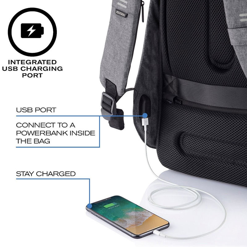 XD Design Bobby Hero - оновлена модель всесвітньо відомого рюкзака, яка зберегла всі свої переваги, а саме непрорізані матеріали, приховані блискавки та таємні кишені, інтегрований порт USB для зарядки, збалансована вага, водовідштовхувальна тканина, світловідбиваючі смуги безпеки та ремінь для кріплення на чомусь.