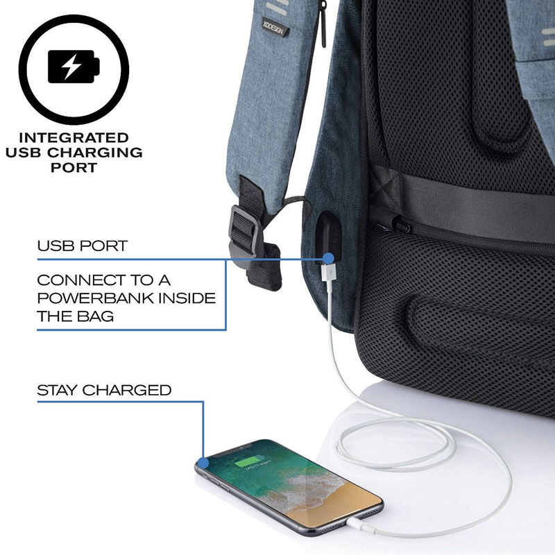 XD Design Bobby Hero - оновлена модель всесвітньо відомого рюкзака, яка зберегла всі свої переваги, а саме непрорізані матеріали, приховані блискавки та таємні кишені, інтегрований порт USB для зарядки, збалансована вага, водовідштовхувальна тканина, світловідбиваючі смуги безпеки та ремінь для кріплення на чомусь.