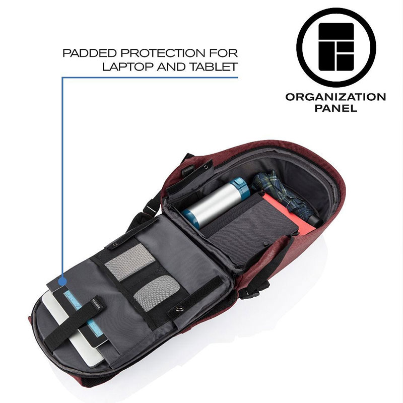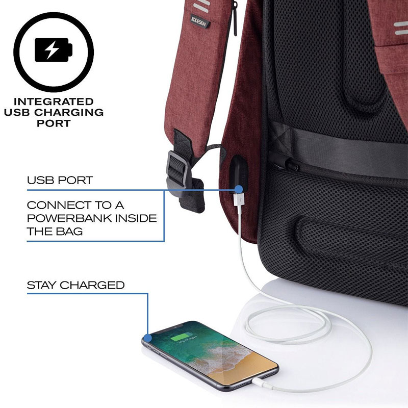 XD Design Bobby Hero - оновлена модель всесвітньо відомого рюкзака, яка зберегла всі свої переваги, а саме непрорізані матеріали, приховані блискавки та таємні кишені, інтегрований порт USB для зарядки, збалансована вага, водовідштовхувальна тканина, світловідбиваючі смуги безпеки та ремінь для кріплення на чомусь.