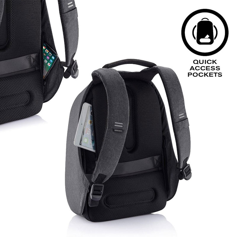 XD Design Bobby Hero XL - оновлена модель всесвітньо відомого рюкзака, яка зберегла всі свої переваги, а саме непрорізані матеріали, приховані блискавки та таємні кишені, інтегрований порт USB для зарядки, збалансована вага, водовідштовхувальна тканина, світловідбиваючі смуги безпеки та ремінь для кріплення на чомусь.