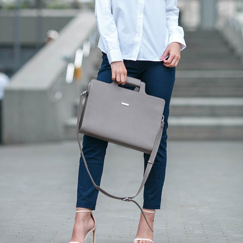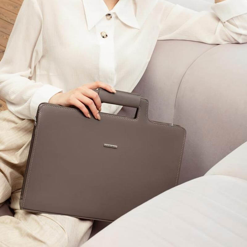 Жіноча шкіряна сумка для ноутбука та документів (темно-бежевий)