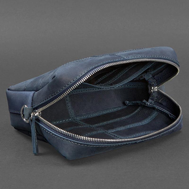 Стильна косметичка-несесер в темно-синьому кольорі призначена для зберігання і перенесення предметів гігієни, косметики, інструментів або зарядок для гаджетів, дорожніх речей та інших дрібниць. Цей аксесуар корисний не тільки для будинку, він також допоможе в організації поїздок. Зручно, коли все на своїх місцях і легко перевірити, що нічого не забули.