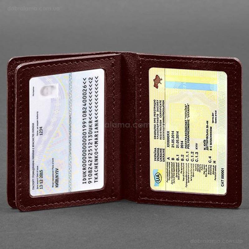 На внутрішній стороні обкладинки розміщено два слоти для пластикових карток, які вам потрібно мати під рукою. Ці слоти добре тримають картки, запобігаючи їх випаданню, тим самим забезпечуючи їхню безпеку. Також обкладинка має 2 двосторонні відділення з прозорими віконцями. Таким чином ID-карту або посвідчення водія можна демонструвати, не дістаючи з обкладинки.