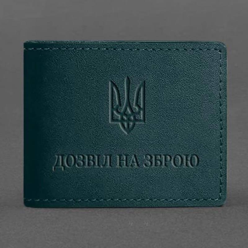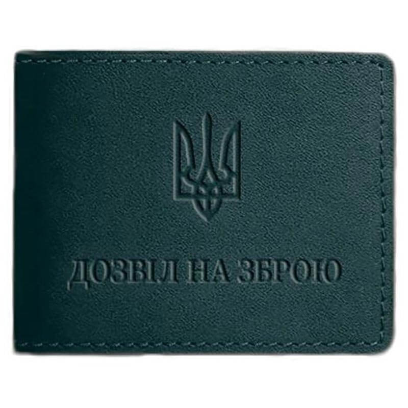 Шкіряна обкладинка для дозволу на зброю (зелена) 7,8х10,2