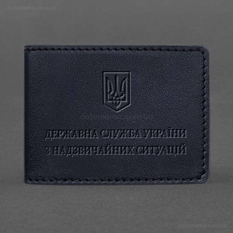 Шкіряна обкладинка для посвідчення ДСНС (темно-синя) шкіра Krast