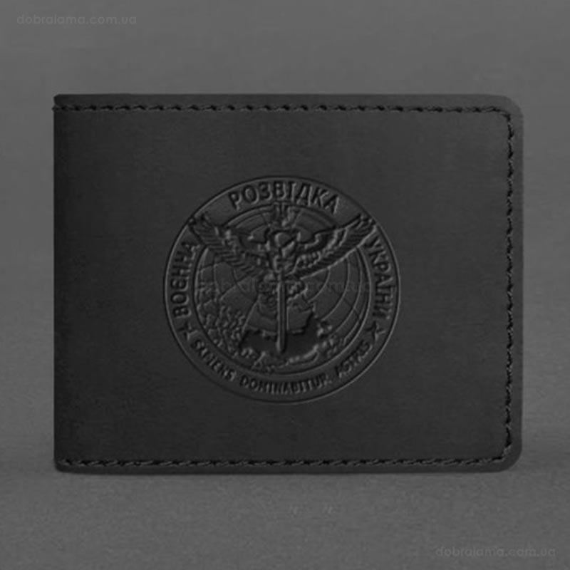 Шкіряна обкладинка для посвідчення ГУР (чорна) шкіра Crazy Horse