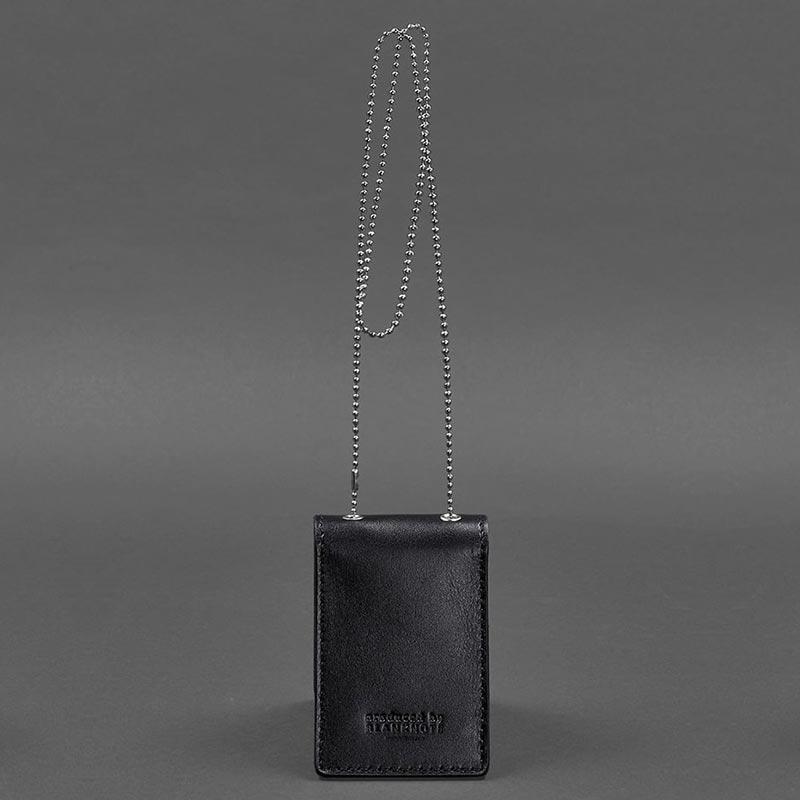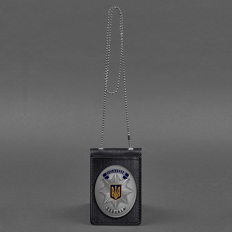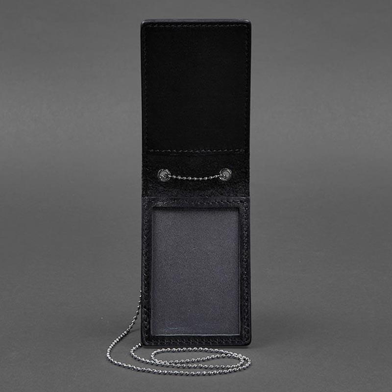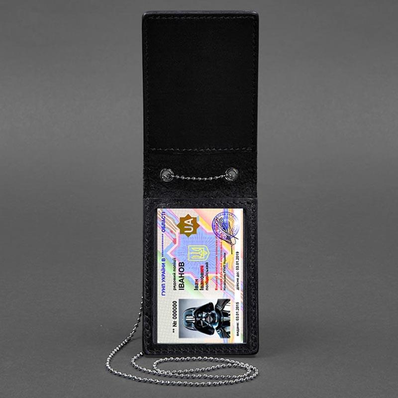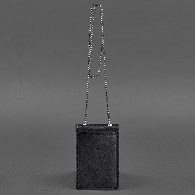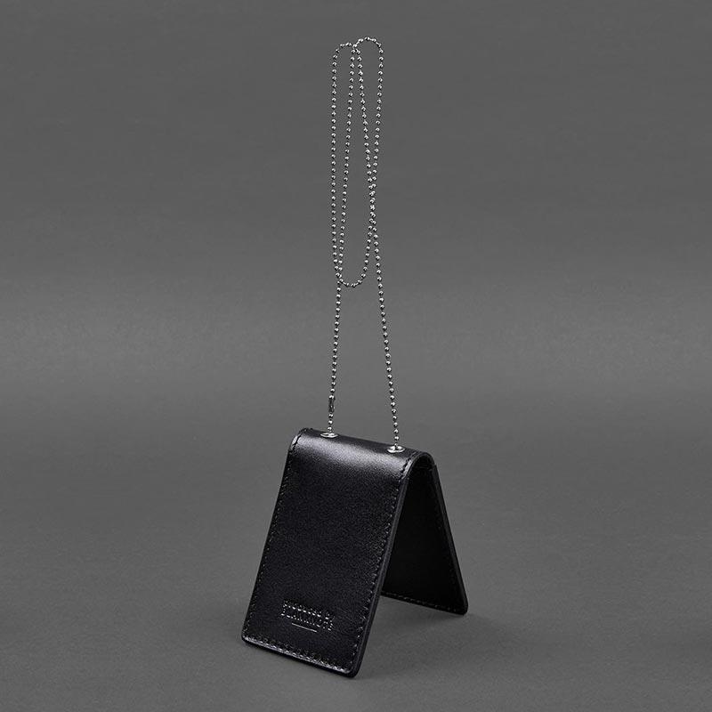 Шкіряна обкладинка для посвідчення та жетону на ланцюжку (чорна)