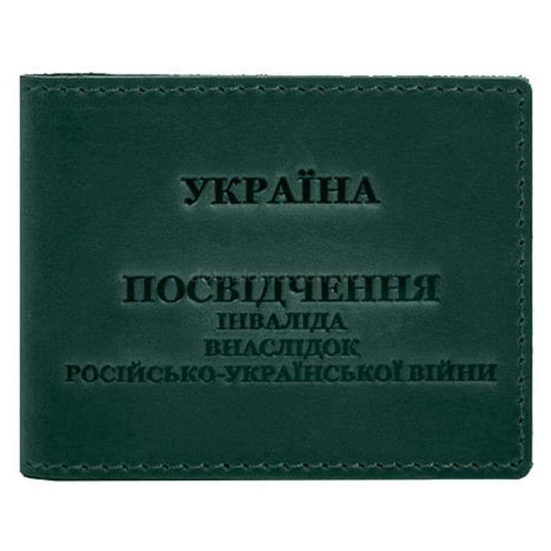 Шкіряна обкладинка для посвідчення інваліда російсько-української війни (зелена) шкіра Crazy Horse
