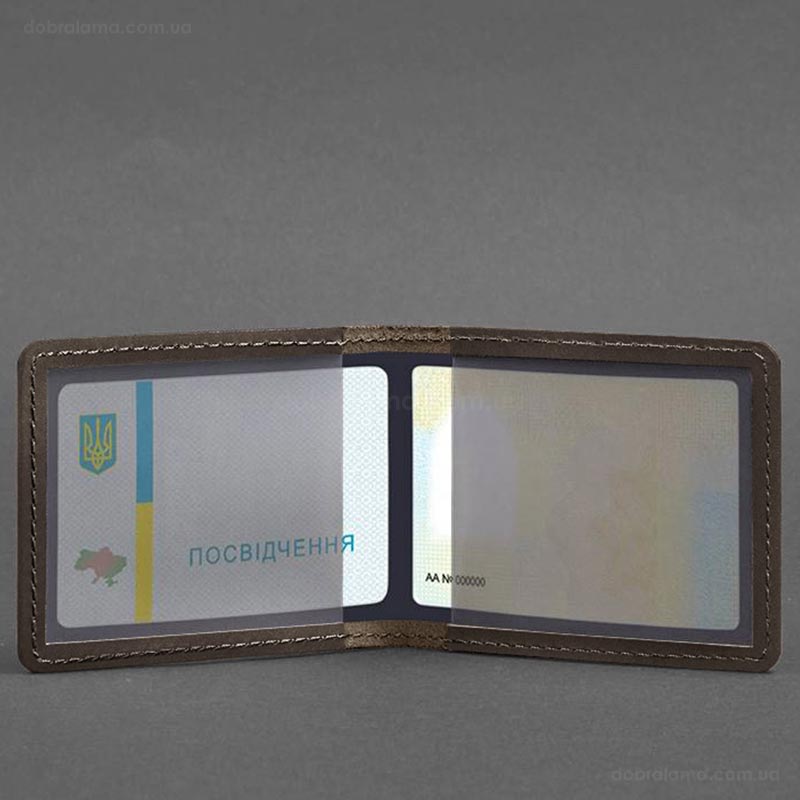 Шкіряна обкладинка для посвідчення з гербом України (темно-коричнева) шкіра Crazy Horse