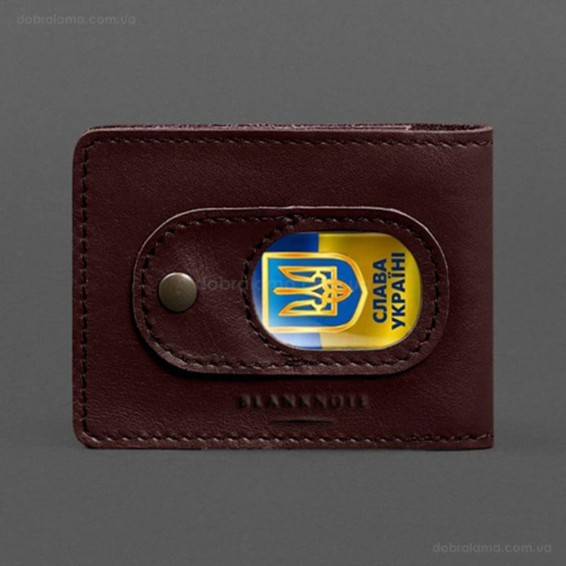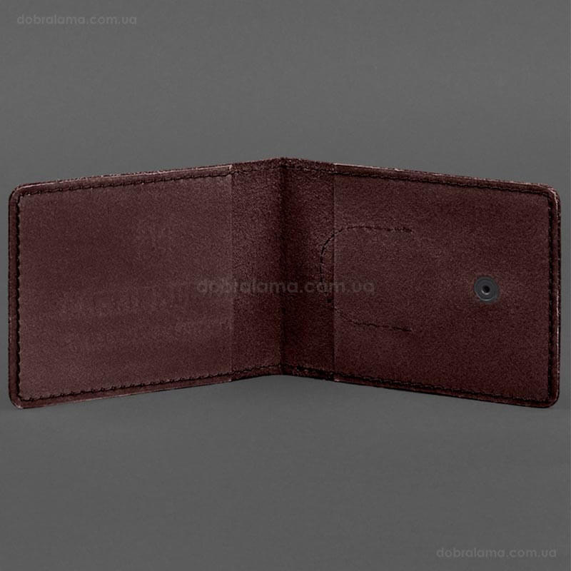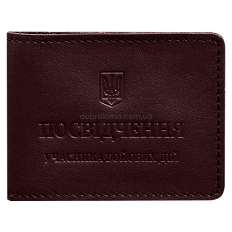 Шкіряна обкладинка для посвідчення УБД з кишенею для жетону (бордова), 8,5х11,5
