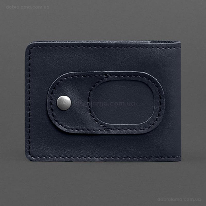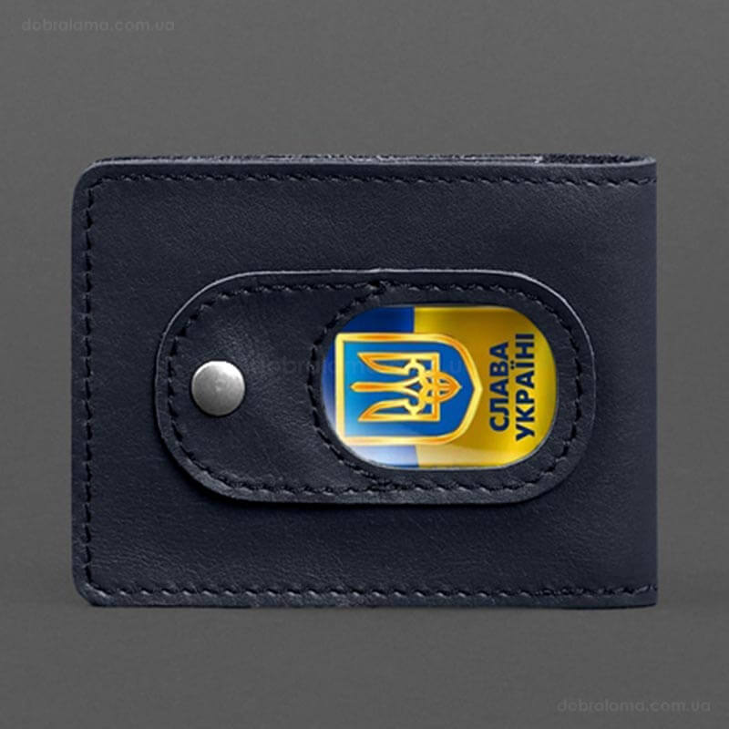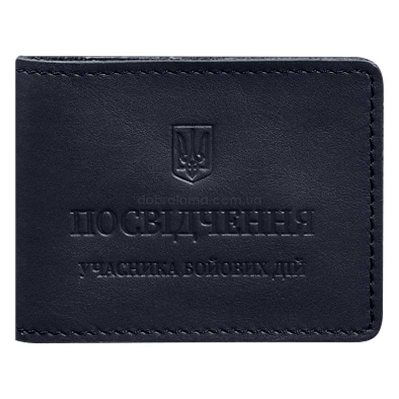 Шкіряна обкладинка для посвідчення УБД з кишенею для жетону (темно-синя), 8,5х11,5