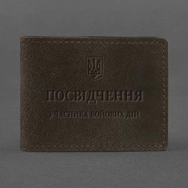 Тиснення на лицьовій стороні обкладинки виконано гарячим методом, який формує чіткий відбиток. Угорі розташований герб України, посередині знаходиться напис «Посвідчення учасника бойових дій»
