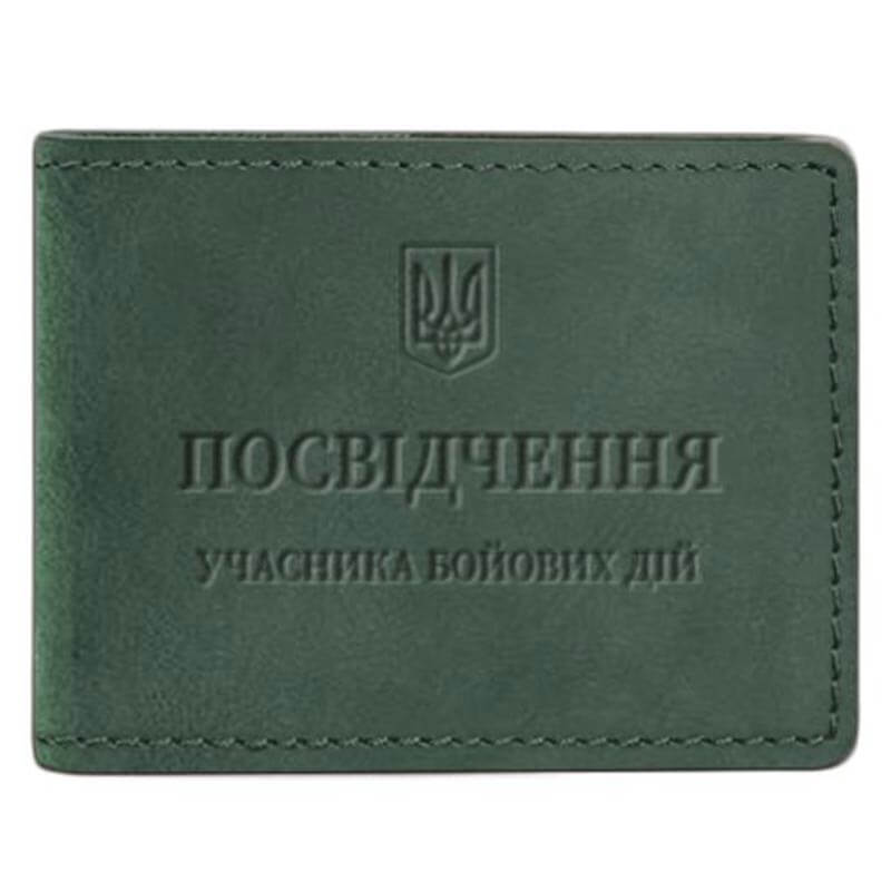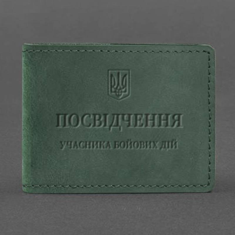 Шкіряна обкладинка для посвідчення УБД (зелена) 8,5x11,5, шкіра Crazy Horse