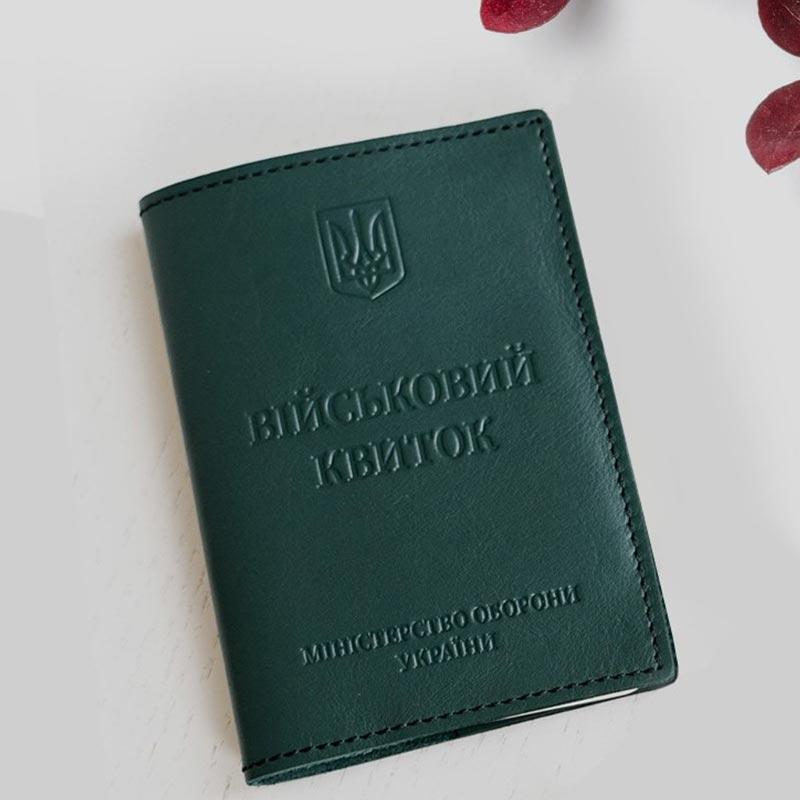 Шкіряна обкладинка для військового квитка 7.0 (зелена)