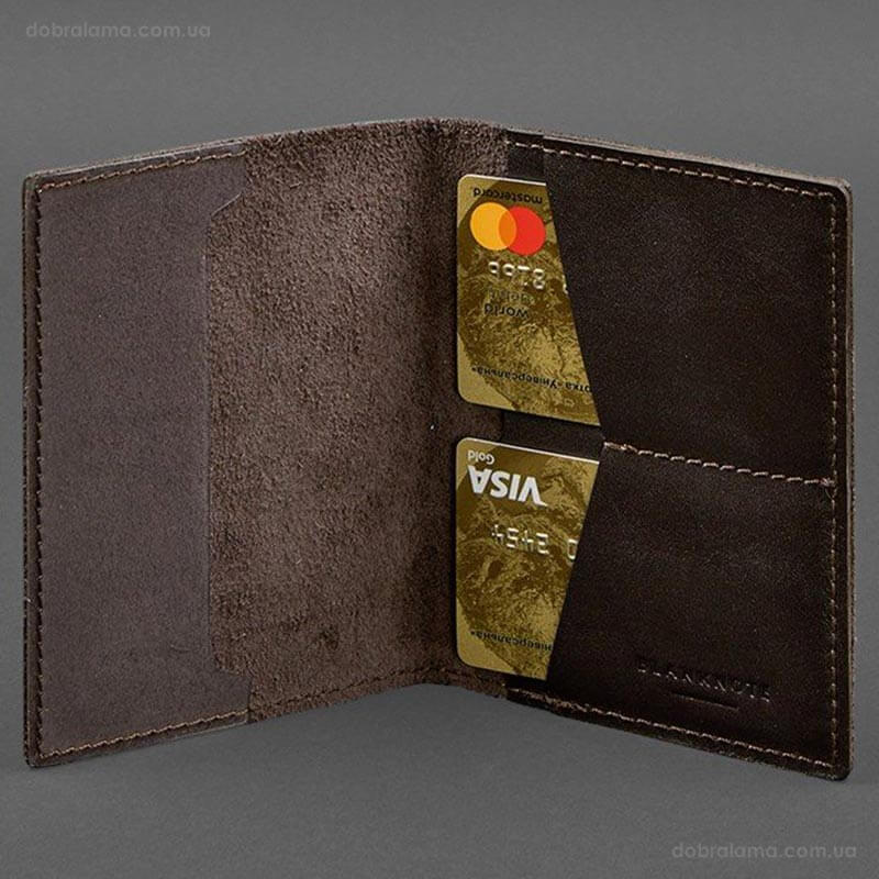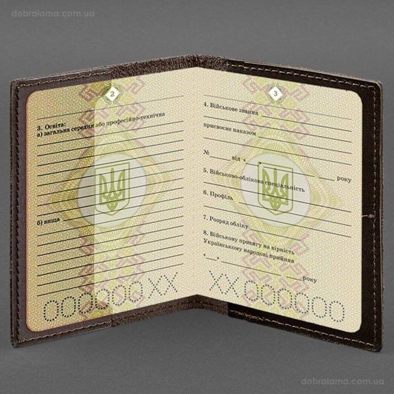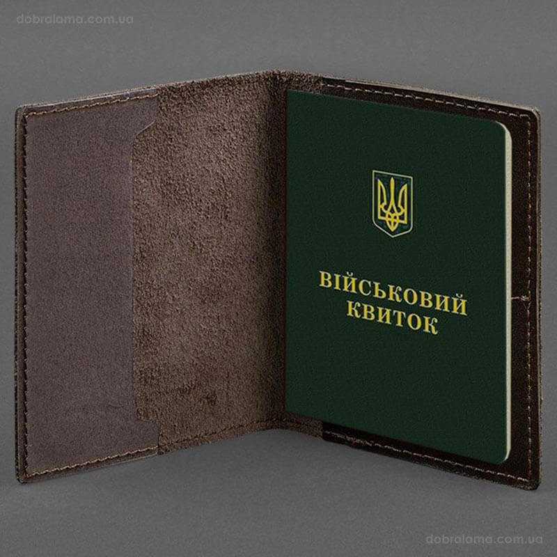 Шкіряна обкладинка для військового квитка 7.2 з кишеньками (темно-коричнева)