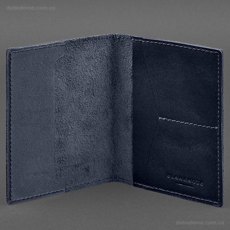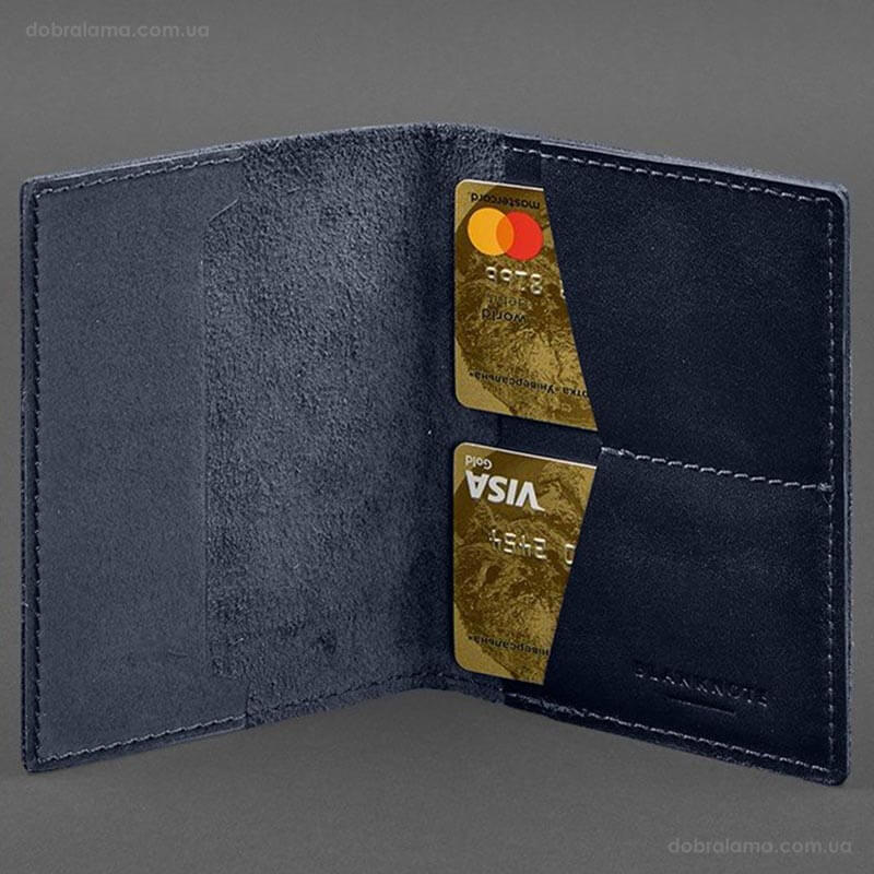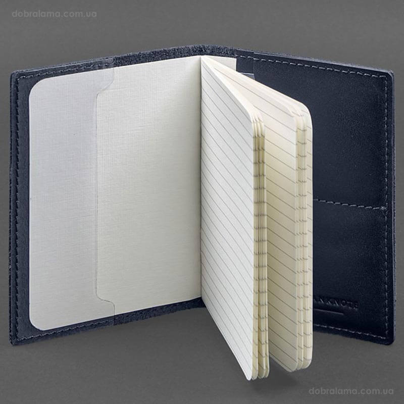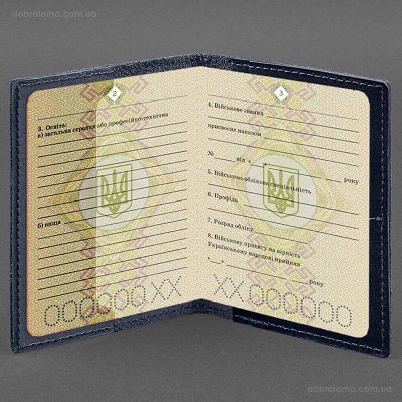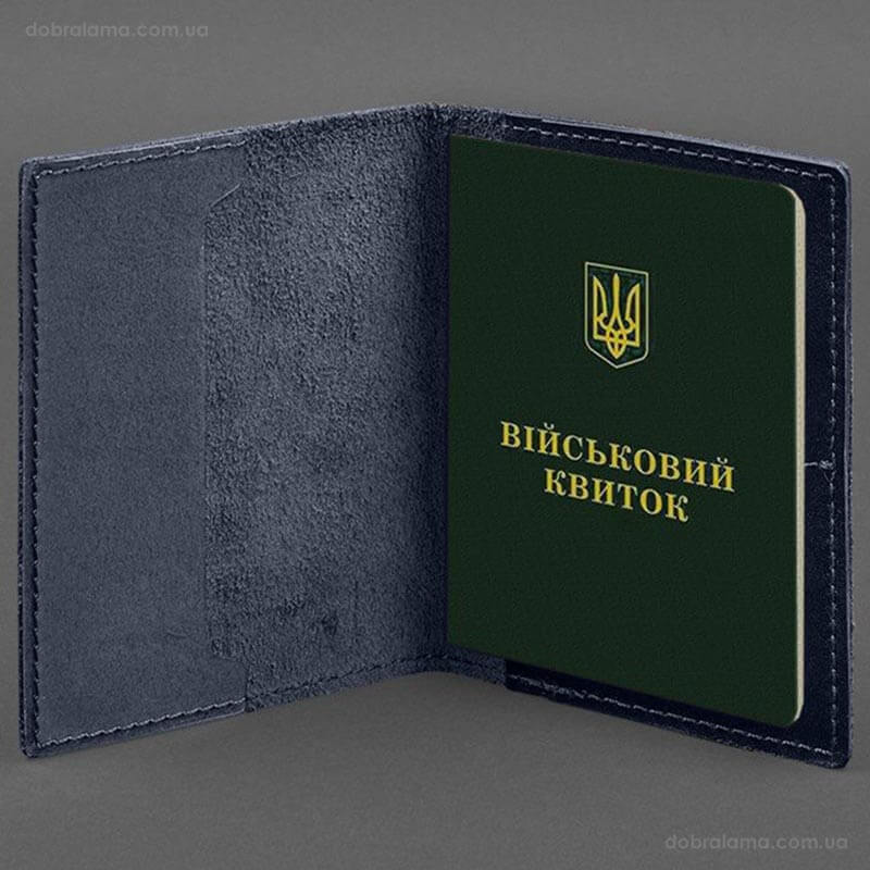 Шкіряна обкладинка для військового квитка 7.2 з кишеньками (темно-синя)