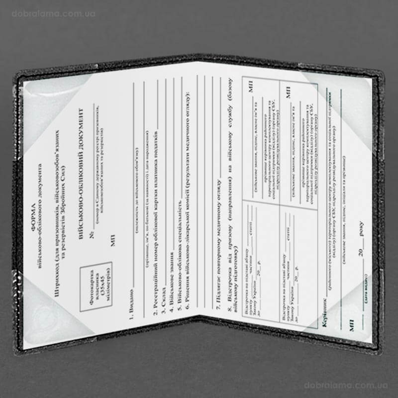 Шкіряна обкладинка для військового квитка (під військово-обліковий документ) 7.4 А5 (чорна)