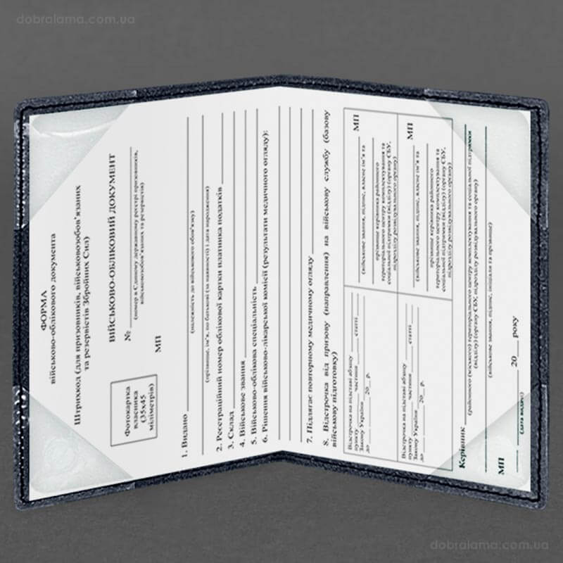 Шкіряна обкладинка для військового квитка (під військово-обліковий документ) 7.4 А5 (темно-синя)