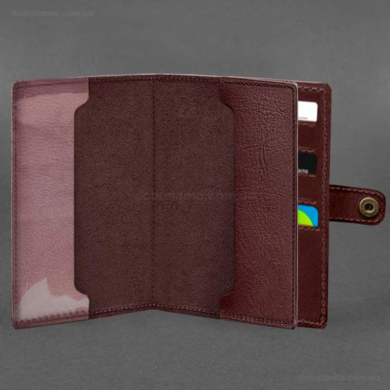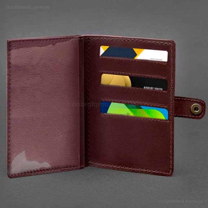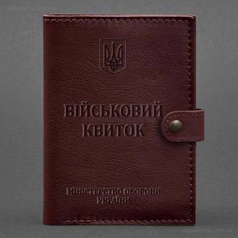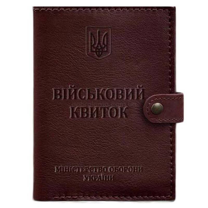 Шкіряна обкладинка-портмоне для військового квитка 15.0 (бордова) шкіра Krast