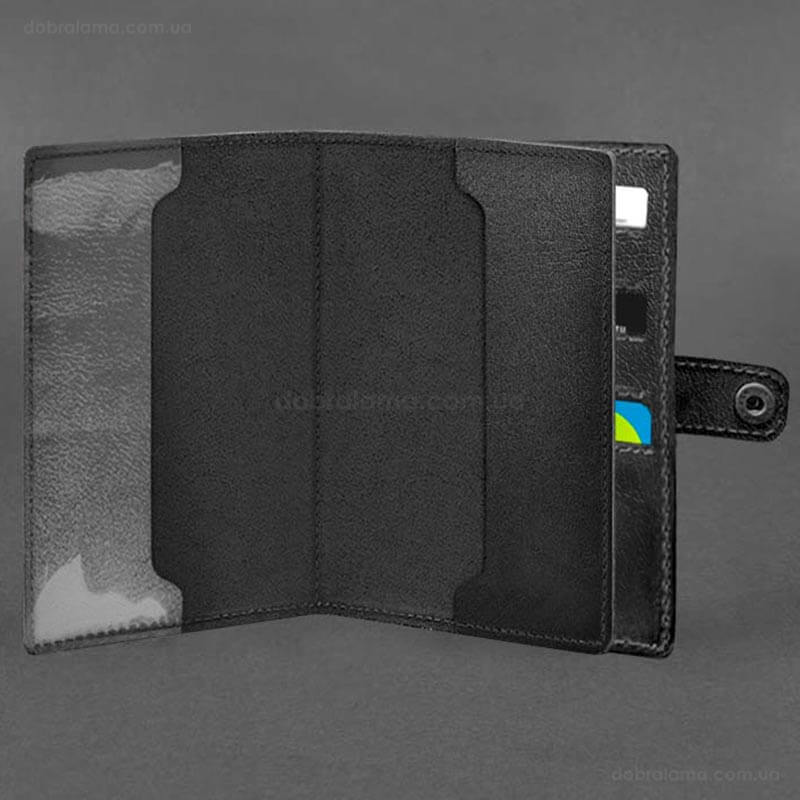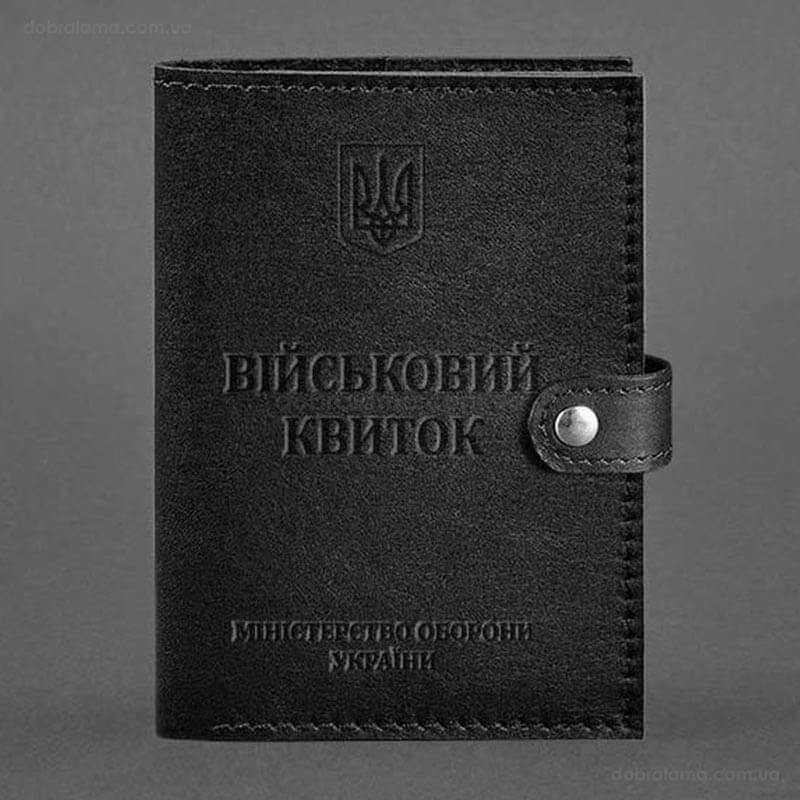 Шкіряна обкладинка-портмоне для військового квитка 15.0 (чорна) шкіра Krast